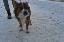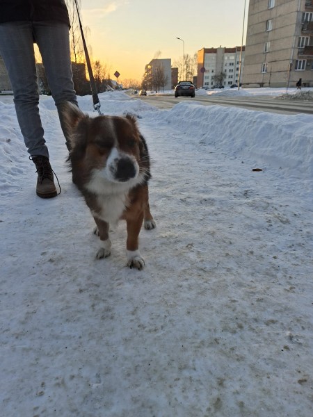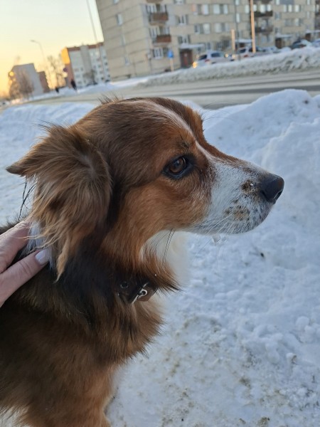 Rēzeknē, 17.01.2026. Lubānas un Dzelzceļnieku ielu rajonā klaiņojošs suns, ir kaklasiksna, žetona nav. Ļoti draudzīgs suņu puika.